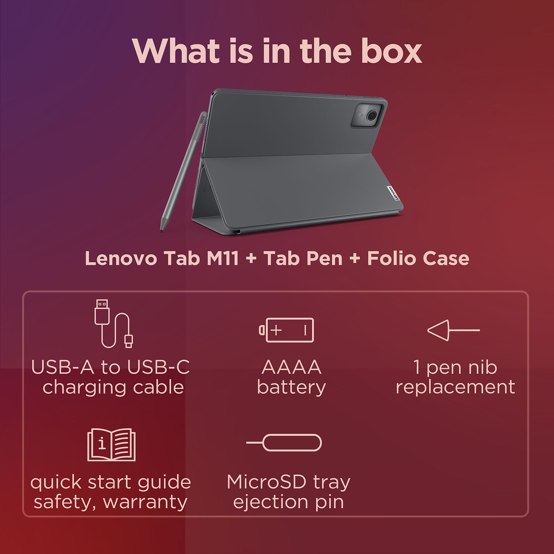 Enjoy the complete Lenovo Tab M11 experience with this set that includes a cover and Active Pen in addition to the tablet. This makes taking notes with the pen a breeze, while the protective folio cover can also be used as a stand.